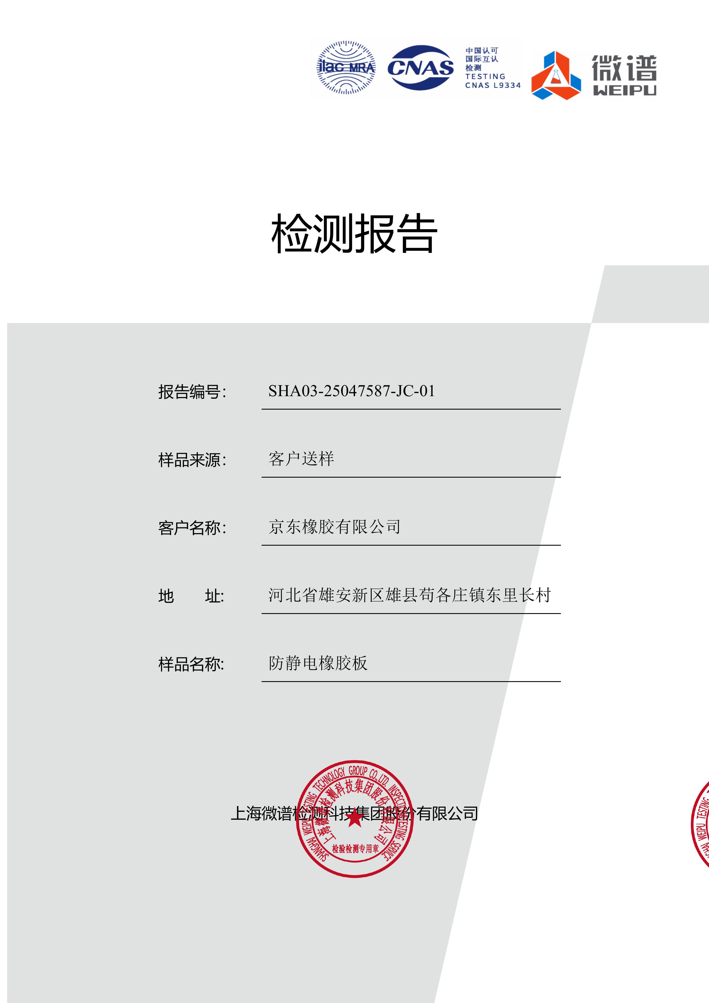 京東橡膠防靜電橡膠板檢測報告